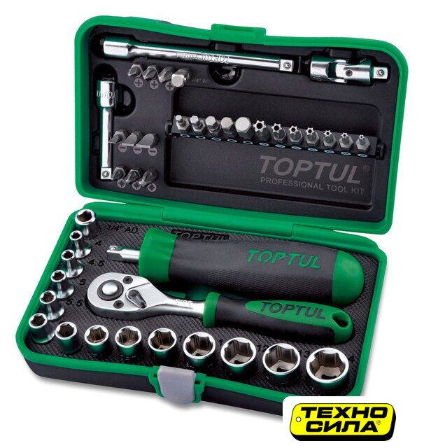 | Торцевые головки 1/4" | 13 предмет(ов) (4, 4.5, 5, 5.5, 6, 7, 8, 9, 10, 11, 12, 13, 14 мм) |