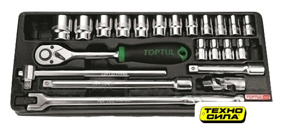 | Торцевые головки 1/2" | 18 предмет(ов) (8, 9, 10, 11, 12, 13, 14, 15, 16, 17, 19, 21, 22, 23, 24, 27, 30, 32 мм) |