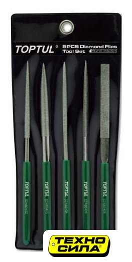| Комплектация | SDNB0402 - Надфиль алмазный круглый; SDNB0403 - Надфиль алмазный полукруглый;SDNB0404 - Надфиль алмазный квадратный;SDNB0405 - Надфиль алмазный треугольный;SDNB0406 - Надфиль алмазный плоский. |