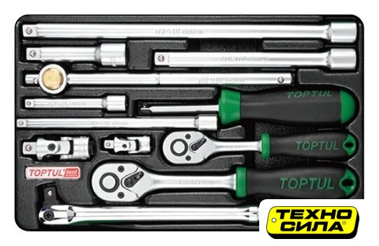 | Комплектация | 1. CJBM0815 & 1220 двусторонняя рукоятка с храповым механизмом 1/4 "& 3/8" с быстрым высвобождением (2 шт.).2. CAIP0816 крутящаяся рукоятка 1/4 " (1 шт.)3. CFAC1210 поворотная ручка 3/8 " - 10" (L) (1 шт.)4. CAHK0840 & 1254 универсальный шарнир 1/4 "& 3/8" (2 шт.)5. CAAA0803 & 0806 удлинитель 1/4 " - 3" и 6 "(L) (2 шт.)6. CAAA1203 ~ 1210 3/8 " Удлинитель - 3", 6 ", 10" (L) (3 шт.)7. CTCJ1208 3/8 " T- образная ручка с быстрым высвобождением - 8" (L) (1 шт.) |