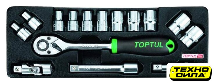 | Торцевые головки 1/2" | 15 предмет(ов) (8, 10, 11, 12, 13, 14, 17, 19, 21, 22, 24 мм) |