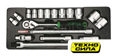 | Торцевые головки 1/2" | 12 предмет(ов) (10, 12, 13, 14, 17, 19, 21, 22, 24, 27, 30, 32 мм) |