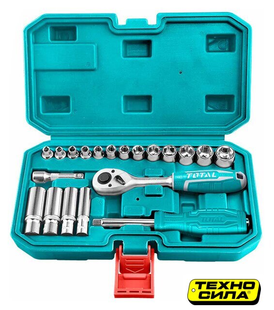 | Комплектация | Торцевые головки 1/4" (4 мм, 4,5 мм, 5 мм, 5,5 мм, 6 мм, 7 мм, 8 мм, 9 мм, 10 мм, 11 мм, 12 мм, 13 мм, 14 мм) - 13 шт.Шестигранные головки 1/4" (8 мм, 10 мм, 12 мм, 13 мм) - 4 шт.Удлинитель 1/4" (50 мм 2") - 1 шт.Ручка отвертки 1/4" - 1 шт.Гаечный ключ-трещотка 1/4" (45T) - 1 шт.Кейс |