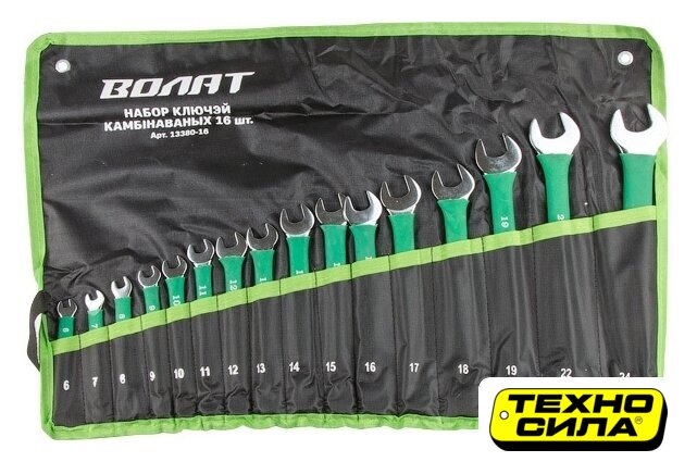| Комплектация | Набор ключей: 6, 7, 8, 9, 10, 11, 12, 13, 14, 15, 16, 17, 18, 19, 22, 24 мм. |