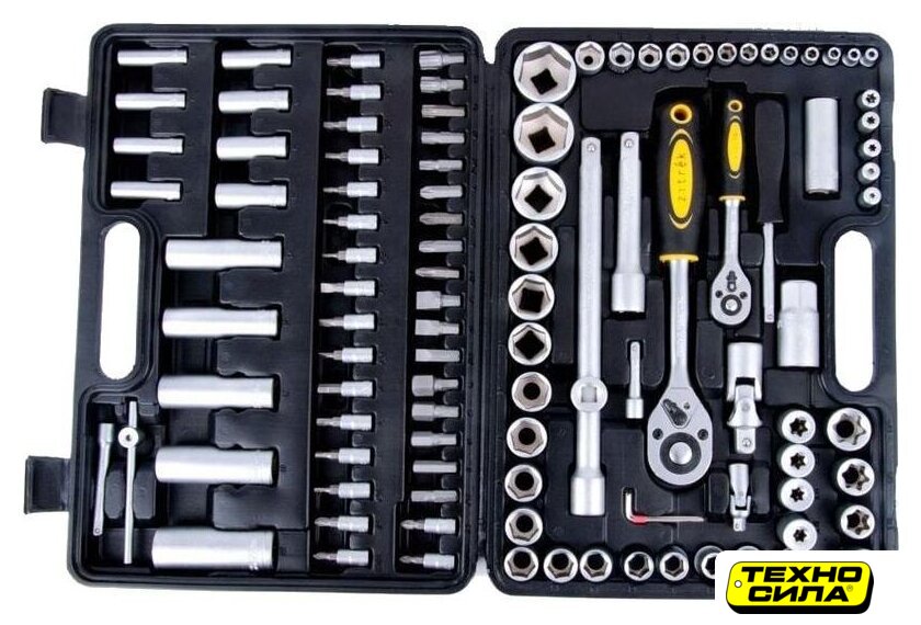 | Комплектация | - Головки 1/2": 10, 11, 12, 13, 14, 15, 16, 17, 18, 19, 20, 21, 22, 24, 27, 30, 32 мм;- Головки удлиненные 1/2": 14, 15, 17, 19, 22 мм;- Удлинитель торцевых головок 1/2": 5", 10";- Шарнир карданный 1/2", 1/4";- Головки Торкс 1/2": Е10, 11, 12, 14, 16, 18, 20, 24;- Трещотка 1/2", 1/4";- Головка свечная 1/2": 16, 21 мм;- Переходник для головок торцевых 1/2";- Головки 1/4": 4, 4.5, 5, 5.5, 6, 7, 8, 9, 10, 11, 12, 13, 14 мм;- Головки удлиненные 1/4": 6, 7, 8, 9, 10, 11, 12, 13 мм;- Удлинитель торцевых головок 1/4": 2", 3";- Головки Торкс 1/4": Е4, 5, 6, 7, 8;- Выдвижной Т-образный стержень 1/4";- Ключ шестигранный 1.5, 2, 2.5 мм;- Держатель бит 1/4";- Биты: SL4, 5.5, 6.5; PH1, 2; PZ1, 2; HEX3, 4, 5, 6; T8, 10, 15, 20, 25, 27, 30;- Биты: SL8, 10, 12; Т40, 45, 50, 55, 60; PH3, 4; PZ3, 4; HEX7, 8, 10, 12, 14. |