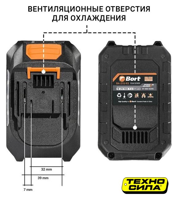 Li-ion, для строительного инструмента, совместим с Daewoo Power, 21 В, 8 А·ч, с индикатором заряда, 1 аккумулятор в наборе, 920 г