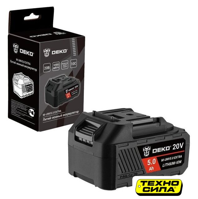 Li-ion, для строительного инструмента, совместим с Deko, 20 В, 5 А·ч, с индикатором заряда, 1 аккумулятор в наборе, 620 г