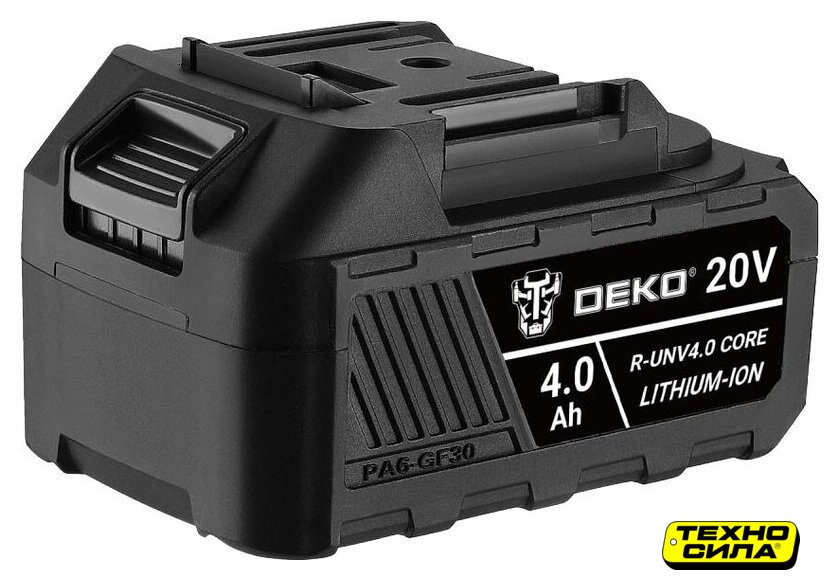 Li-ion, для строительного инструмента, совместим с Deko, 20 В, 4 А·ч, с индикатором заряда, 1 аккумулятор в наборе, 620 г