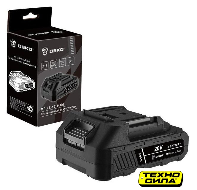 Li-ion, для строительного инструмента, совместим с Deko, 20 В, 5 А·ч, с индикатором заряда, 1 аккумулятор в наборе