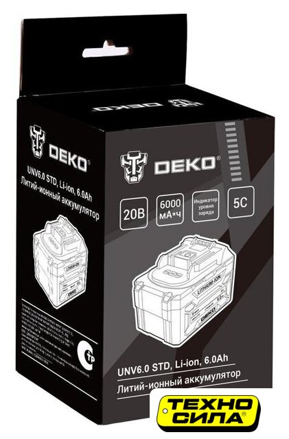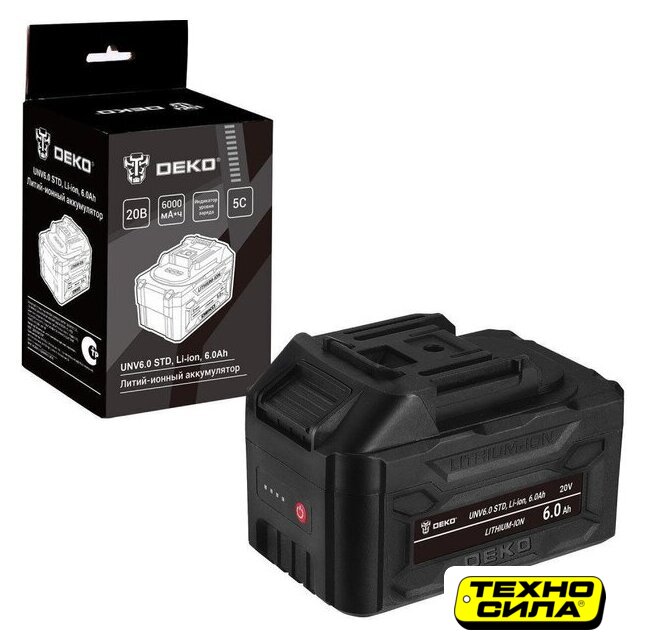 Li-ion, для строительного инструмента, совместим с Deko, 20 В, 3 А·ч, с индикатором заряда, 1 аккумулятор в наборе