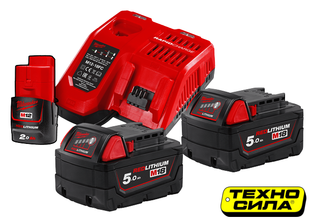 Комплектация | - Аккумулятор M18 B5 - 2 шт- Аккумулятор M12 B2 - 1 шт- Зарядное устройство M12-18FC - Документация |