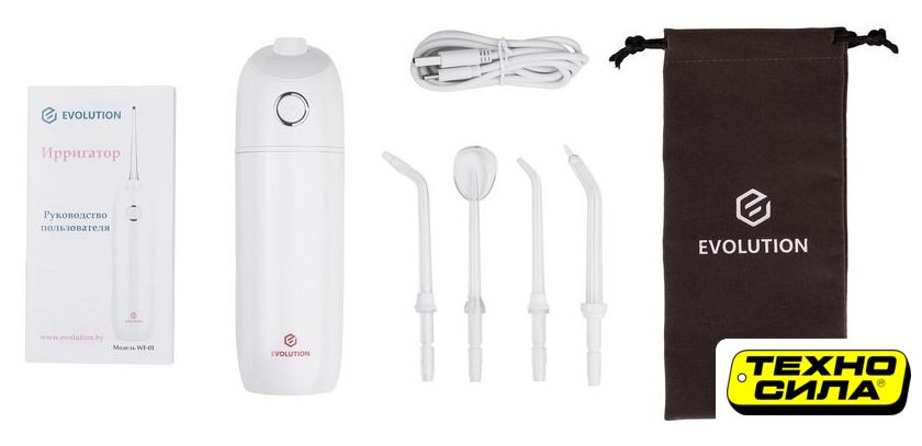 ирригатор, мягкая чистка, питание от аккумулятора, регулировка струи, в комплекте: USB-кабель