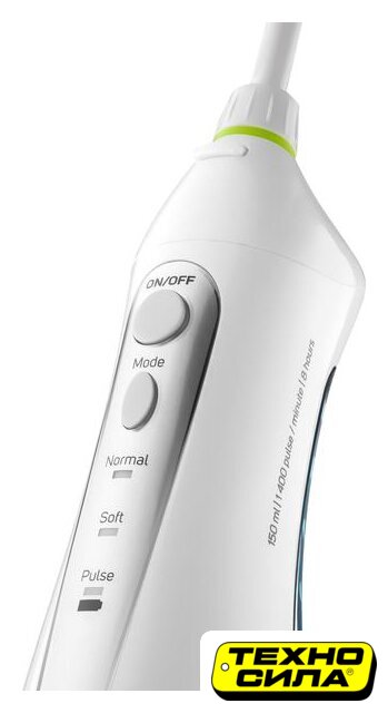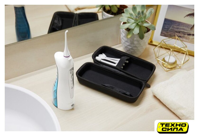 ирригатор, питание от аккумулятора, движение головки: пульсация, в комплекте: подставка-зарядная база, USB-кабель