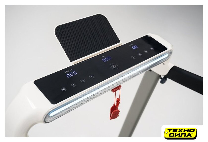 Особенности | - Кардиодатчики на поручнях- Кнопки регулировки скорости- Возможность вертикального хранения - Транспортировочные ролики- Bluetooth, крепление под телефон, LED экран |