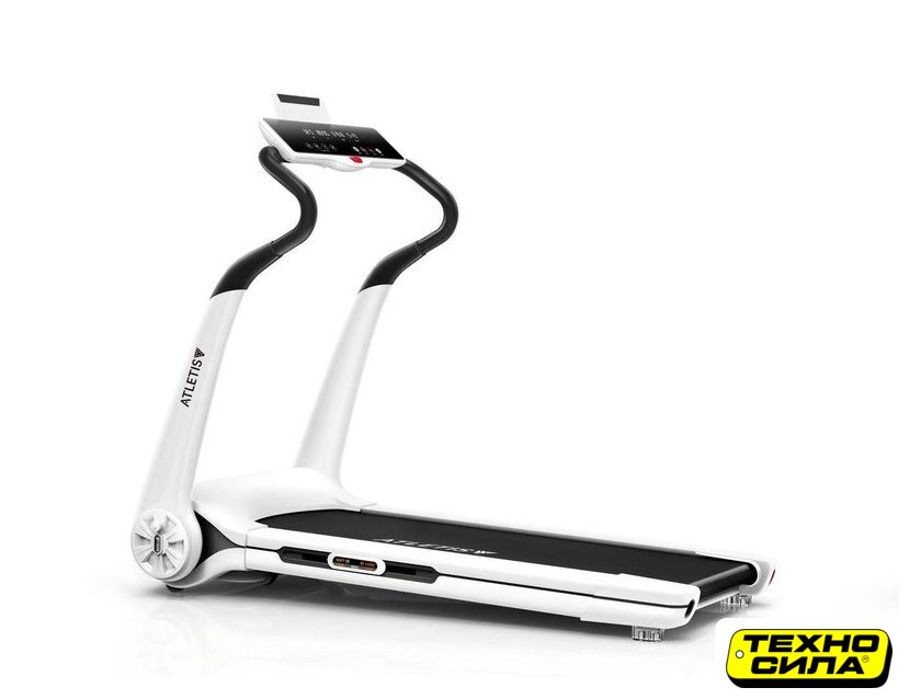Особенности | Стильное решение для поддержания формы и физической активности. Беговая дорожка подойдет пользователям невысокого и среднего роста.Благодаря мощному двигателю беговое полотно движется равномерно при любой скорости и с любой нагрузкой.Одно из важных преимуществ модели ATLASSPORT Atletis— простая ультракомпактная система складывания. В сложенном виде высота тренажера всего 27 см. Система складывания дорожки очень простая — нужно просто закрепить стойку с консолью на беговом полотне.Для безопасных тренировок на полотно нанесен антискользящий рисунок.В беговой дорожке реализована настраиваемая система амортизации. Она состоит из 4 цилиндрических эластомеров, 6 пружинных блоков и мобильного амортизатора в центральной части. Подвижный амортизатор можно передвигать ближе к началу или середине бегового полотна, чтобы регулировать жесткость всей системы.На консоли с LED-дисплеем отображаются все основные характеристики тренировки. Для удобства есть быстрые кнопки изменения скорости. Также на панели управления предусмотрена полочка для планшета и USB-разъем для подзарядки гаджета.Поскольку дорожка рассчитана на тренировки небольшой интенсивности, в ней нет датчиков пульса. Из-за специфики конструкции также не предусмотрена функция изменения угла наклона. |