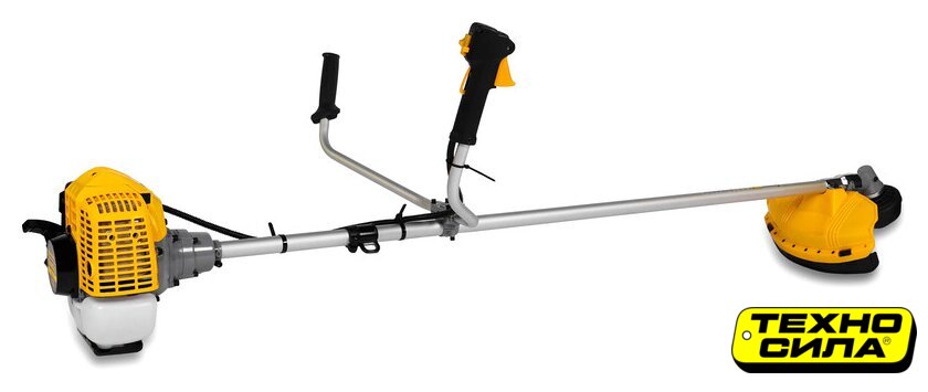 бензиновый, оснастка: леска+металлический диск, ширина скашивания 25.5-43 см, вес 8 кг