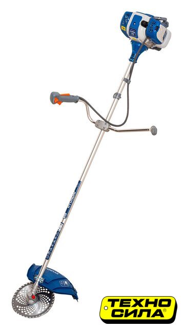 бензиновый, 1100 Вт, оснастка: металлический нож+леска, ширина скашивания 25.5-44 см, вес 7.5 кг