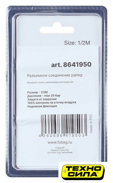 фитинг (штуцер), типоразмер 1/2", серебристый
