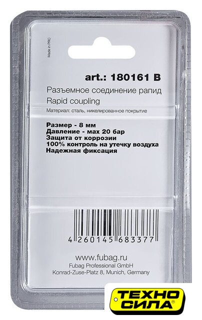 фитинг (переход), сталь, типоразмер 1/4"/8, серебристый