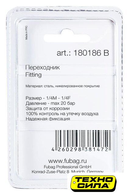 фитинг (штуцер), типоразмер 1/4"/1/2", серебристый