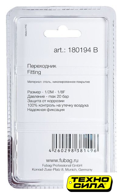 фитинг (переход), нержавеющая сталь, типоразмер 1/4"/1/2", серебристый