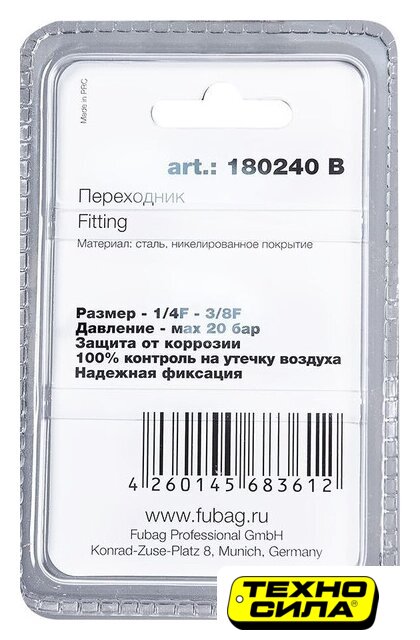 фитинг (штуцер), типоразмер 3/8", серебристый
