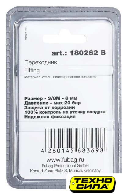 фитинг (переход), нержавеющая сталь, типоразмер 1/4"/1/2", серебристый