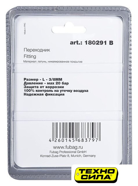 фитинг (штуцер), типоразмер 3/8"/1/2", серебристый