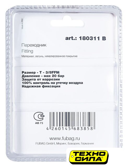 фитинг (штуцер), типоразмер 3/8", серебристый