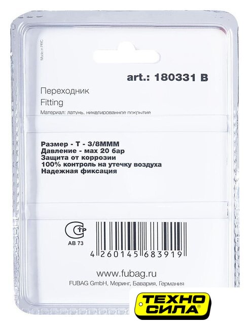 фитинг (штуцер), типоразмер 3/8", серебристый