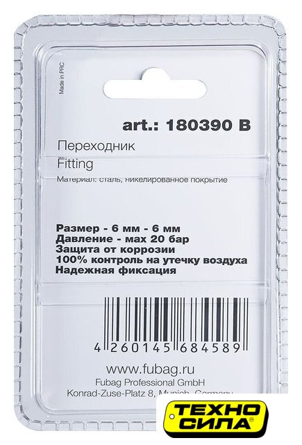 фитинг (штуцер), типоразмер 1/4"/3/8", серебристый