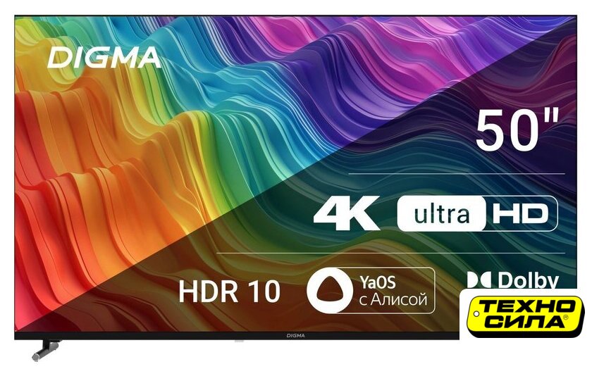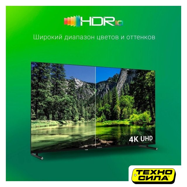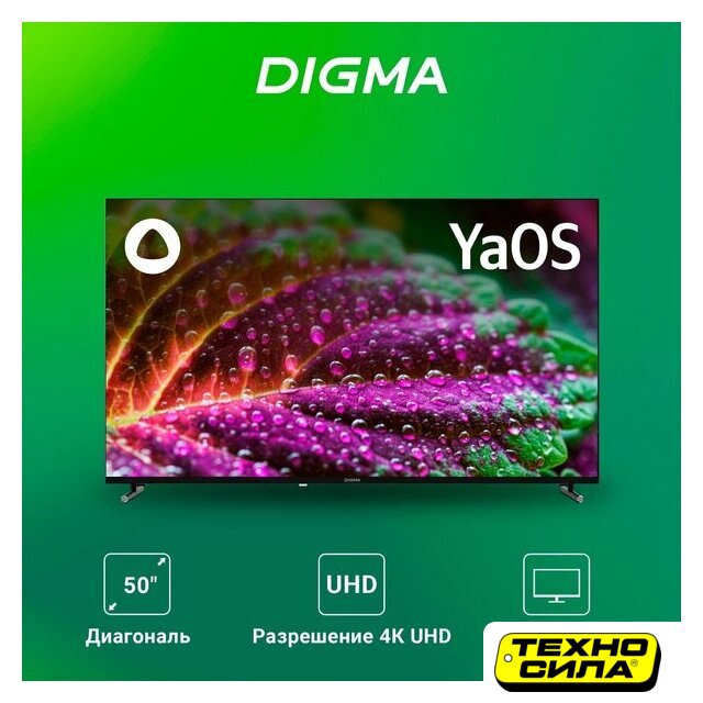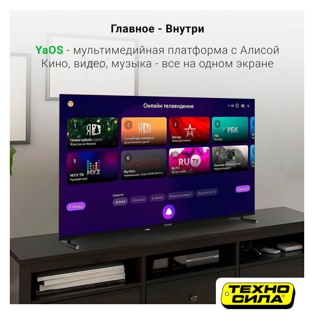 50" 3840x2160 (4K UHD), частота матрицы 60 Гц, Smart TV (Яндекс.ТВ), Wi-Fi, смарт пульт