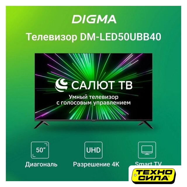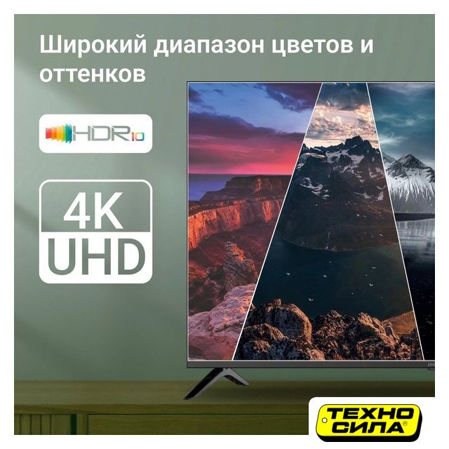 50" 3840x2160 (4K UHD), матрица VA, частота матрицы 60 Гц, Smart TV (Яндекс.ТВ), HDR10, Wi-Fi, смарт пульт