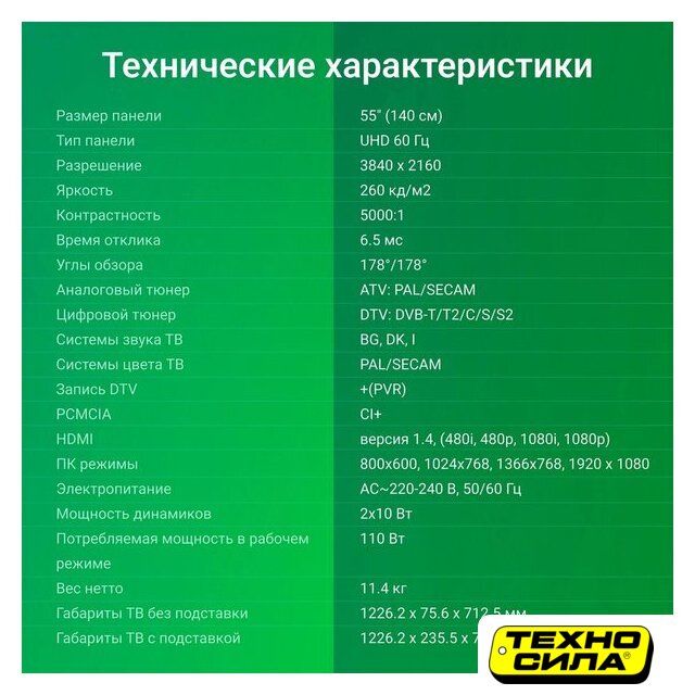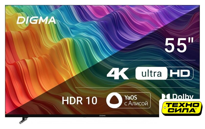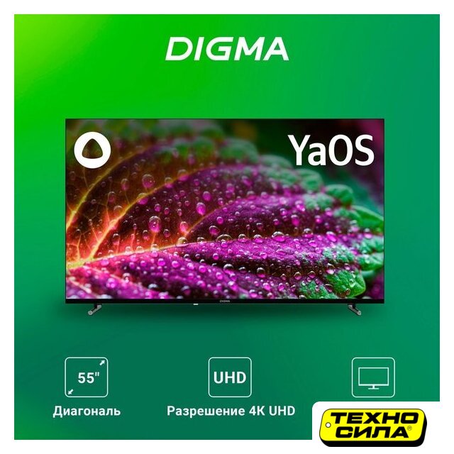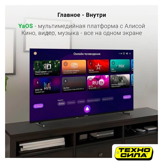 55" 3840x2160 (4K UHD), матрица VA, частота матрицы 60 Гц, Smart TV (Яндекс.ТВ), Wi-Fi, смарт пульт