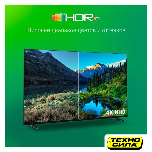 55" 3840x2160 (4K UHD), частота матрицы 50 Гц, Smart TV (Android), Wi-Fi