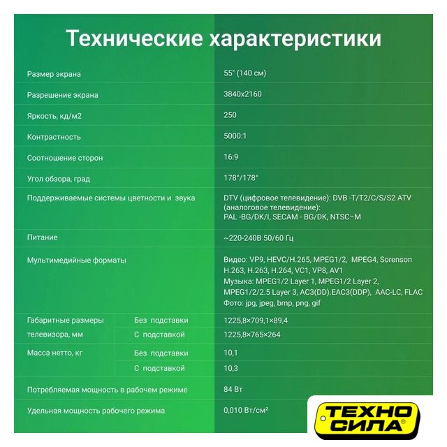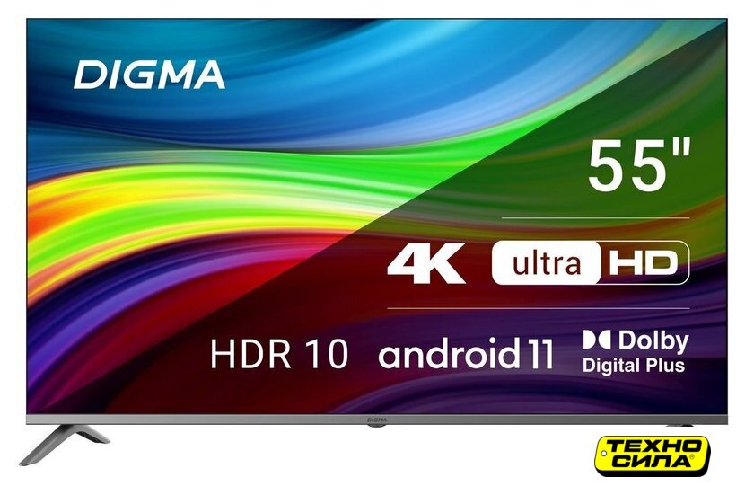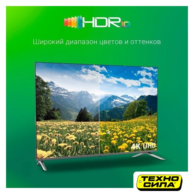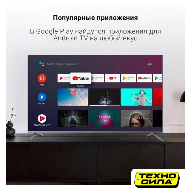 55" 3840x2160 (4K UHD), частота матрицы 60 Гц, Smart TV (Android TV), HDR, Wi-Fi