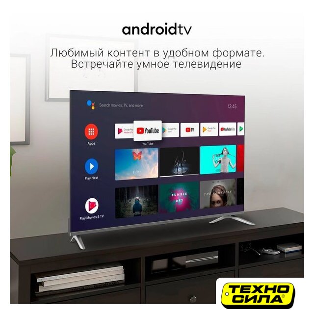 50" 3840x2160 (4K UHD), частота матрицы 60 Гц, Smart TV (Android TV), Wi-Fi, смарт пульт