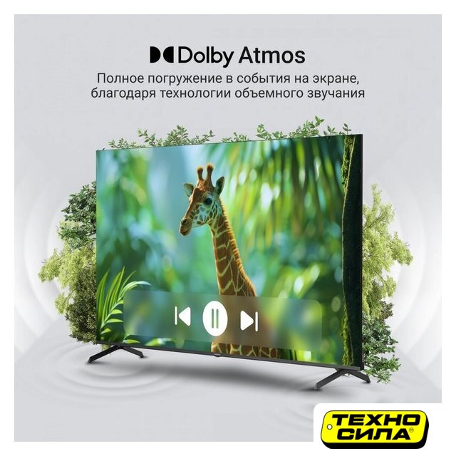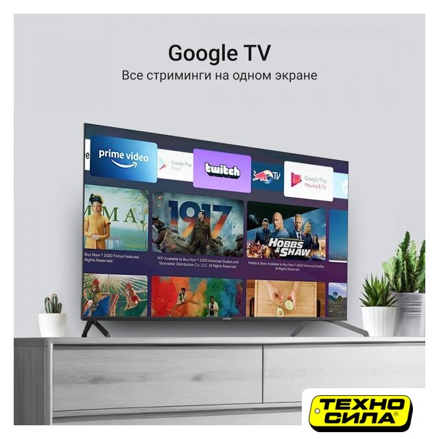 65" 3840x2160 (4K UHD), матрица VA, частота матрицы 60 Гц, Smart TV (Google TV), HDR10+, HLG, Dolby Atmos, Wi-Fi, смарт пульт