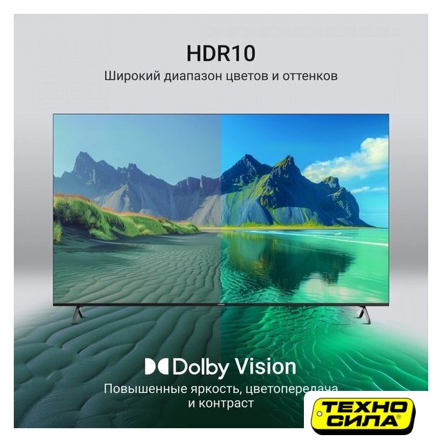 70" 3840x2160 (4K UHD), частота матрицы 60 Гц, Smart TV (Android TV), HLG, Wi-Fi, смарт пульт