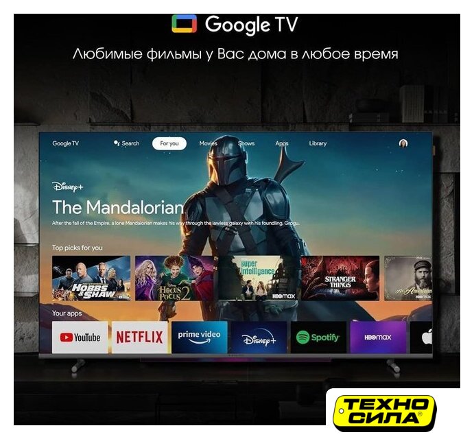 75" 3840x2160 (4K UHD), частота матрицы 60 Гц, Smart TV (Google TV), HDR10, Dolby Vision, Dolby Atmos, AirPlay, Wi-Fi