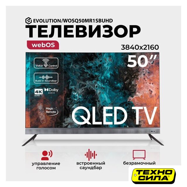 50" 3840x2160 (4K UHD), частота матрицы 60 Гц, Smart TV (Android TV), HDR10, HLG, DTS:HD, DTS:X, Wi-Fi, смарт пульт