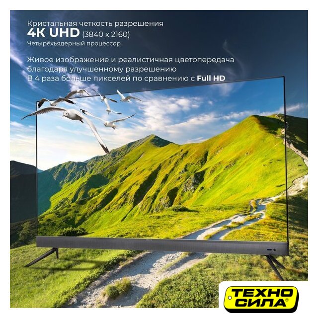 55" 3840x2160 (4K UHD), матрица VA, частота матрицы 60 Гц, Smart TV (Яндекс.ТВ), HDR10, Wi-Fi, смарт пульт