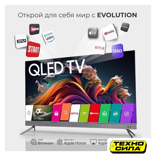 55" 3840x2160 (4K UHD), частота матрицы 60 Гц, Smart TV (Android TV), HDR10, Dolby Vision, AirPlay, Wi-Fi, смарт пульт