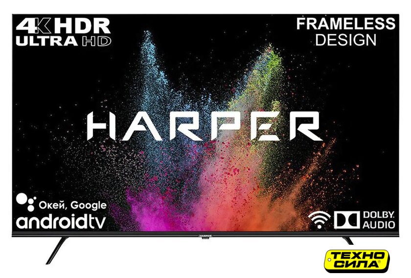 55" 3840x2160 (4K UHD), частота матрицы 60 Гц, Smart TV (Салют ТВ), HDR10, Wi-Fi, смарт пульт