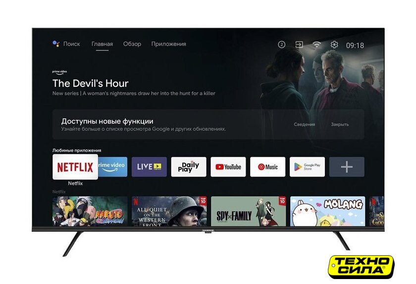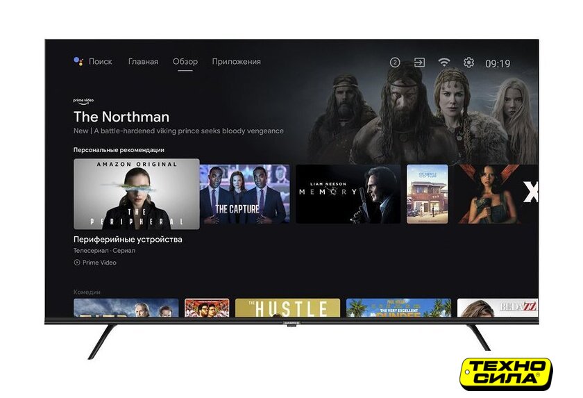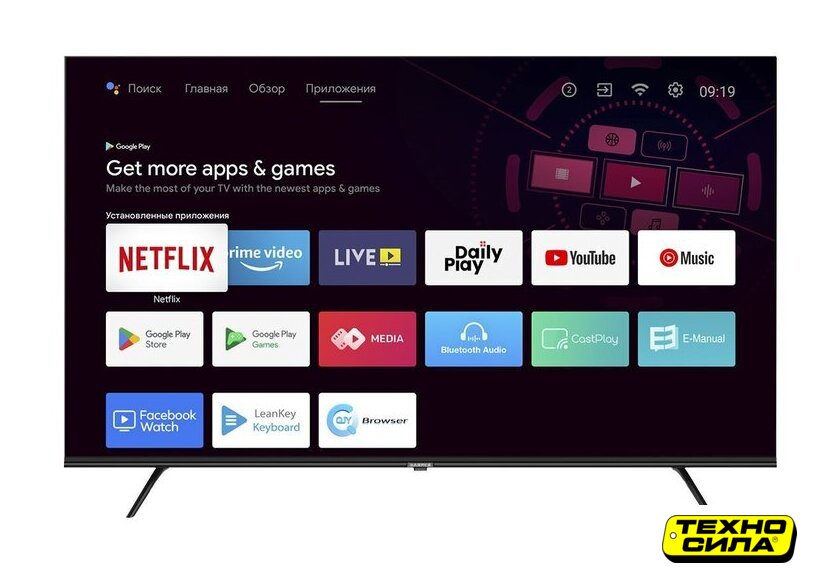 55" 3840x2160 (4K UHD), частота матрицы 60 Гц, Smart TV (Яндекс.ТВ), Wi-Fi, смарт пульт
