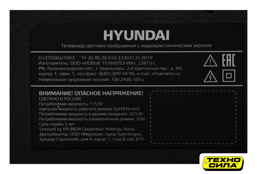 50" 3840x2160 (4K UHD), матрица VA, частота матрицы 60 Гц, Smart TV (Яндекс.ТВ), HDR10, Wi-Fi, смарт пульт
