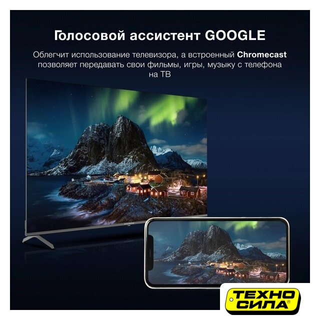 65" 3840x2160 (4K UHD), частота матрицы 60 Гц, Smart TV (Google TV), HDR10, HDR10+, Dolby Vision, Dolby Atmos, Wi-Fi, смарт пульт