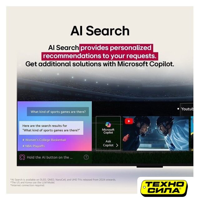 | Технологии улучшения изображения | - AI Picture Pro- AI Picture Wizard- AI Super Upscaling- OLED Dynamic Tone Mapping Pro |