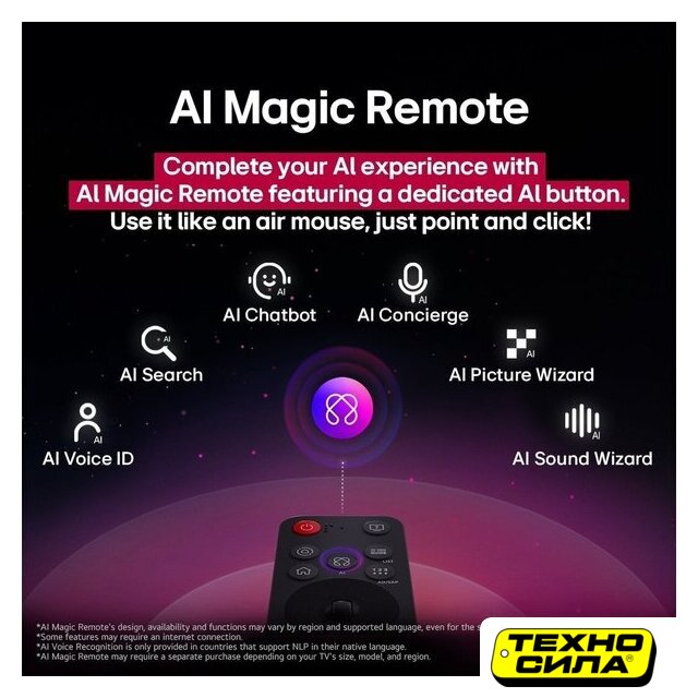 | Пульт в комплекте | LG MR25 - NFC, управлением курсором и голосом |