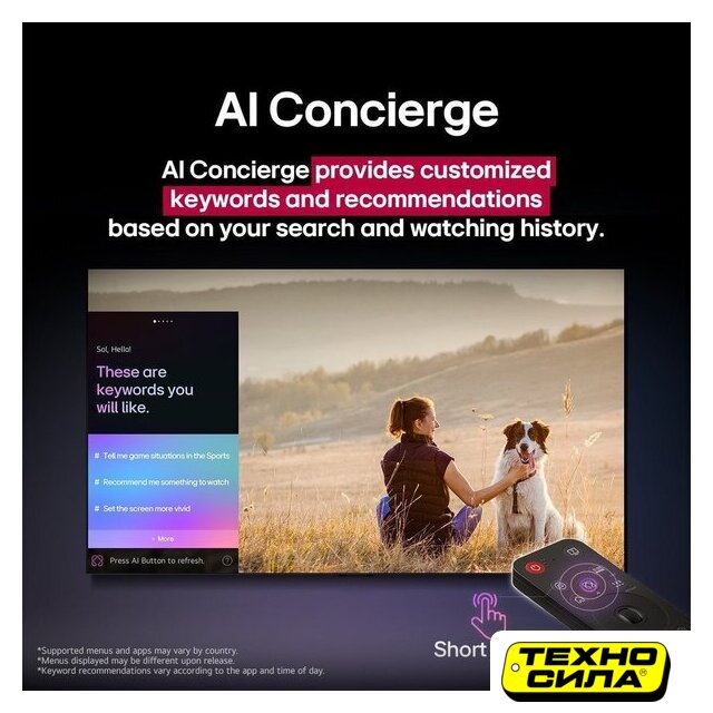 | Оригинальные функции | - AI Voice ID- AI Chatbot- AI Concierge- AI Sound Pro- Home Hub- поддержка Matter- WOW Orchestra- Multi View- LG Channels- Gaming Portal |